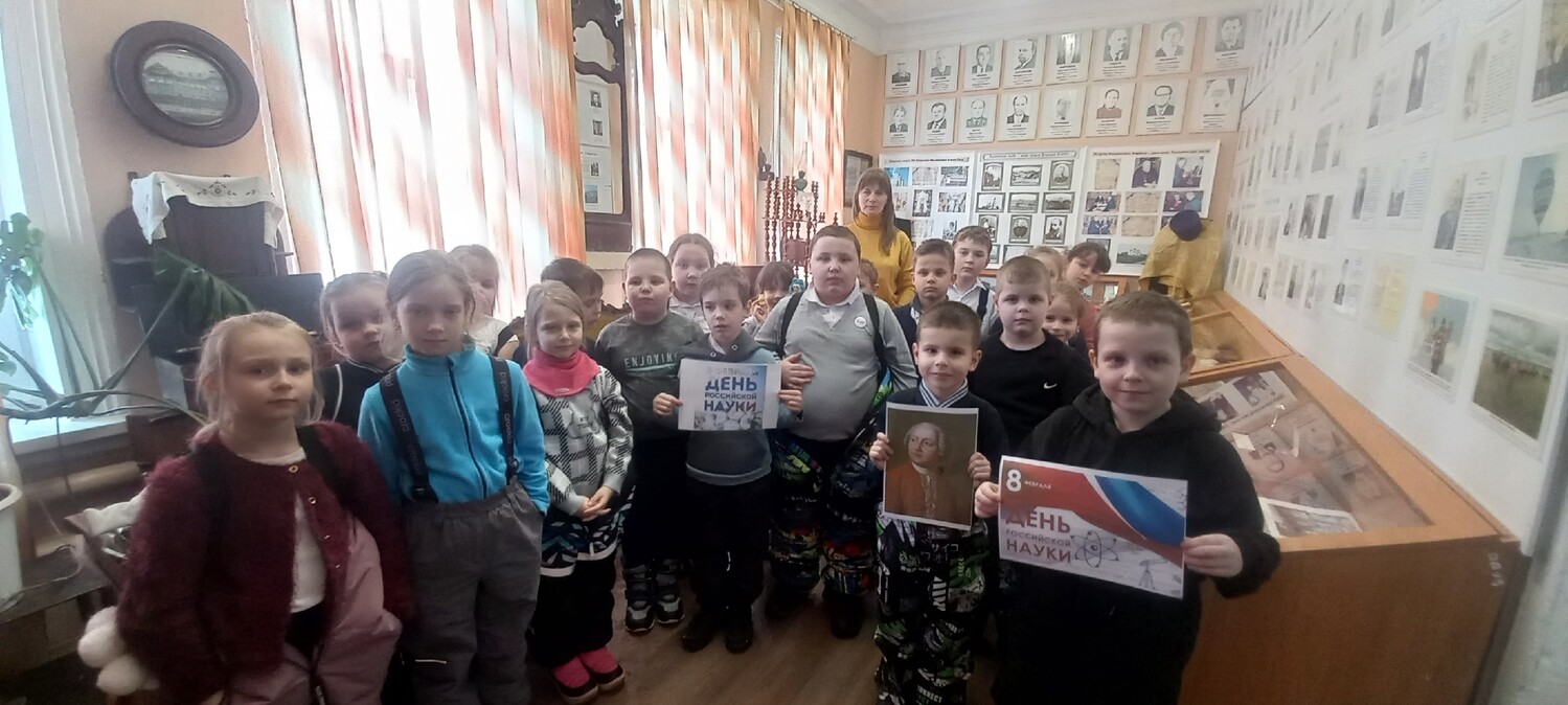 Сегодня в нашем музее для ребят из группы продленного дня (воспитатель Колесникова Т.А) прошёл увлекательный праздник — День российской науки!