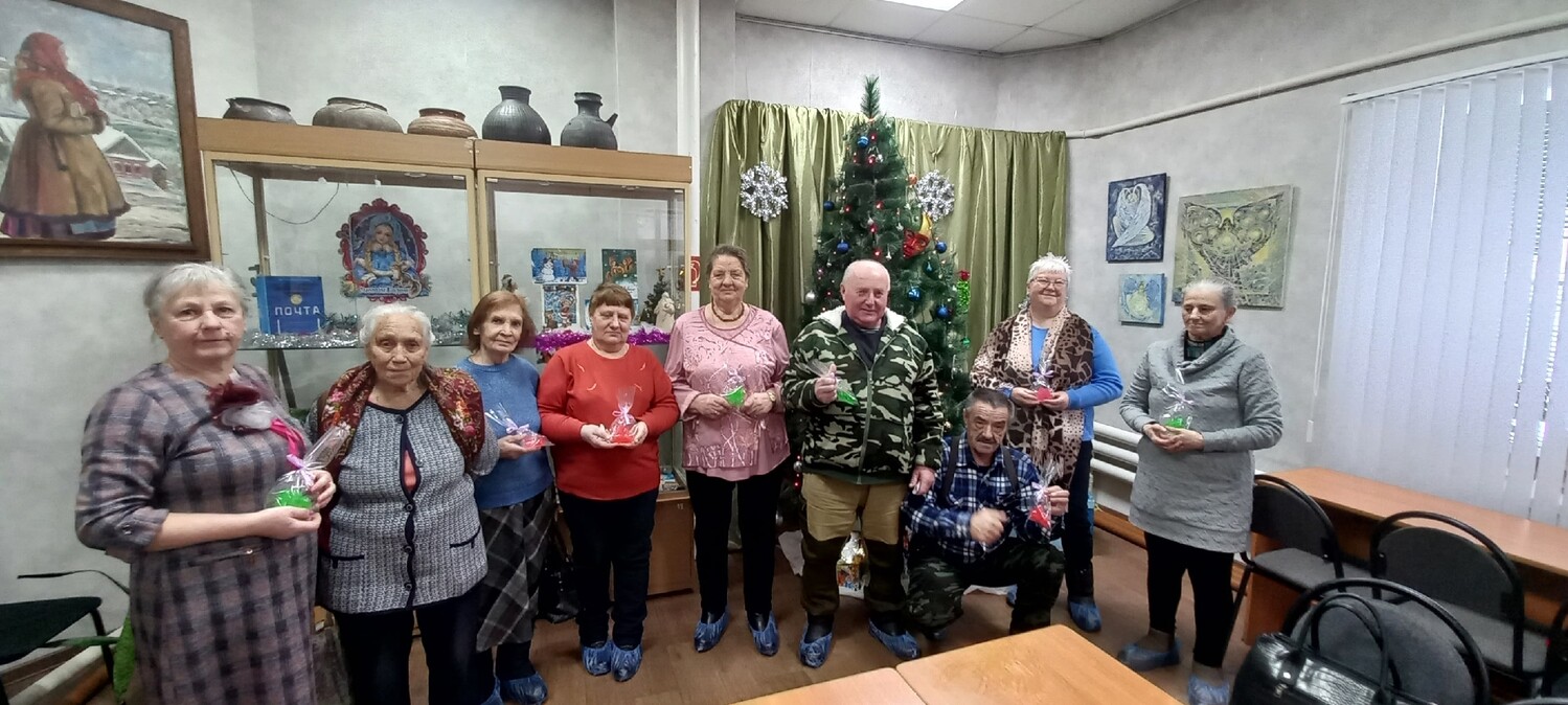 В преддверии новогодних праздников к нам приехала замечательная группа людей старшего поколения из села Гагино. Их ждал особенный день — обзорная экскурсия по нашему краеведческому музею, чаепитие со вкусным пирогом и мастер-класс по мыловарению.