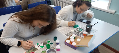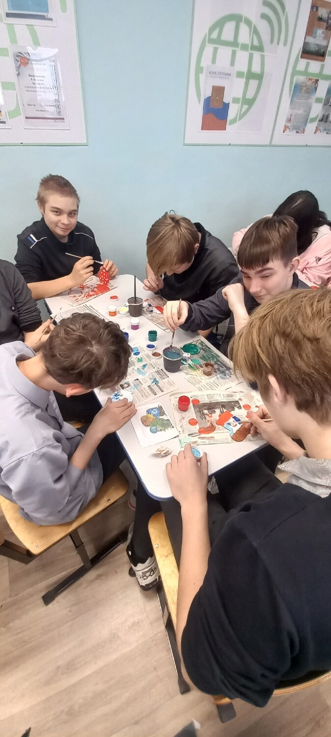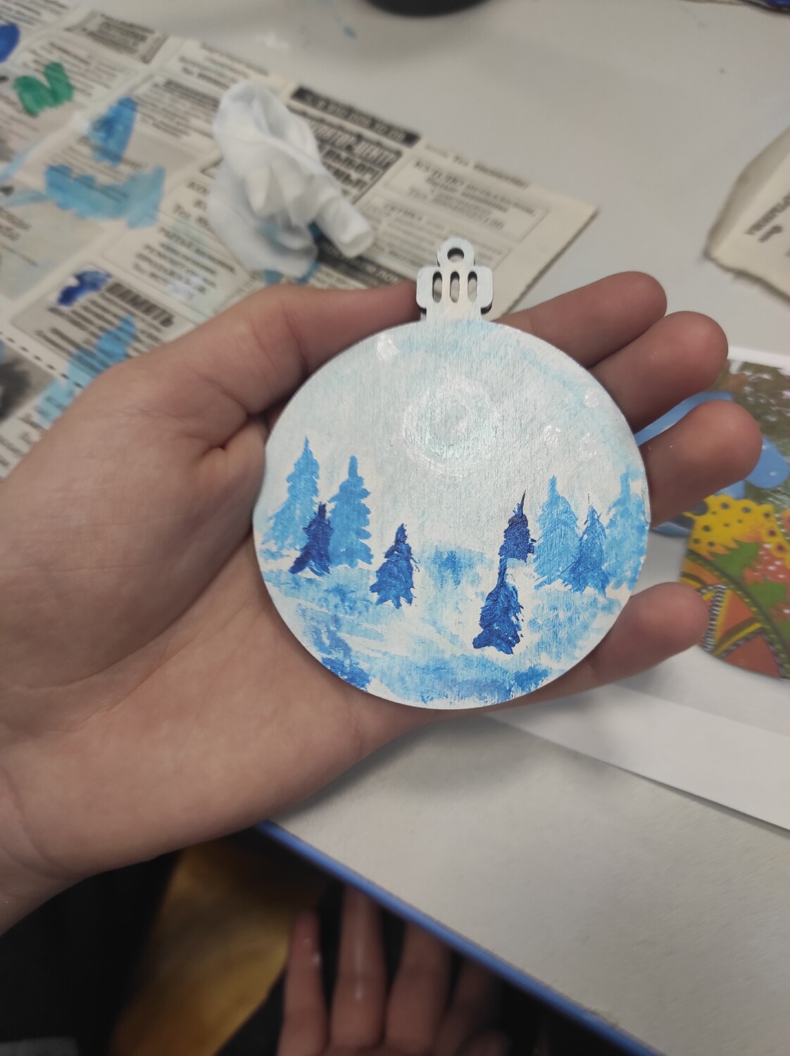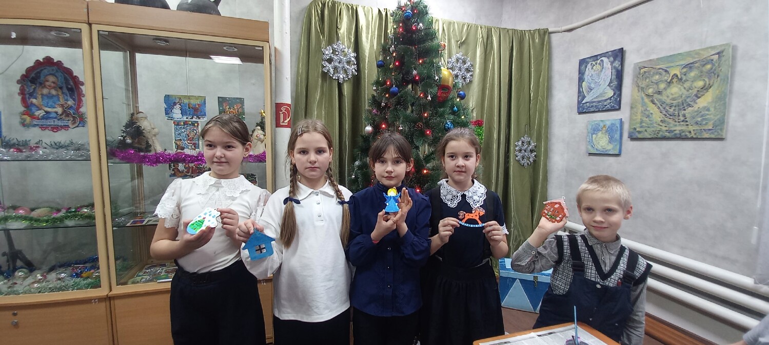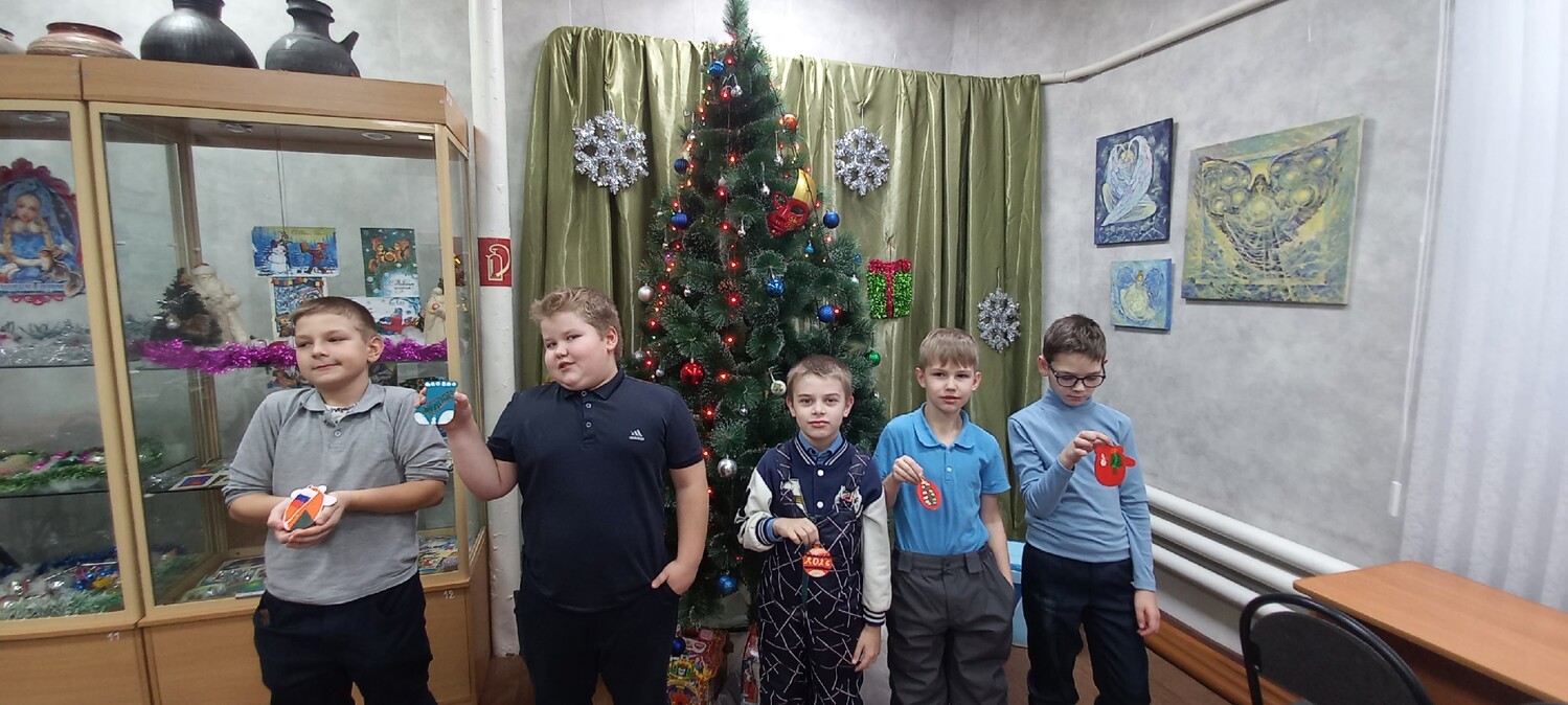 Волшебство в музее продолжается— мастер-класс по росписи новогодних игрушек для ребят СШ №1