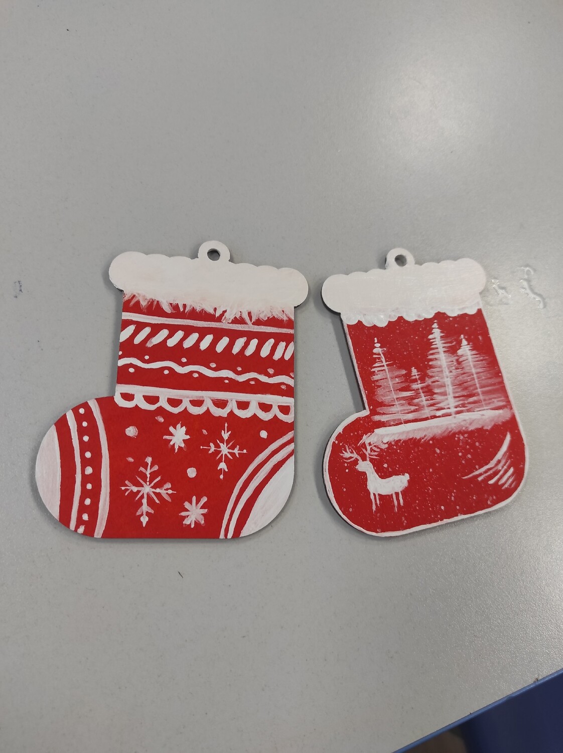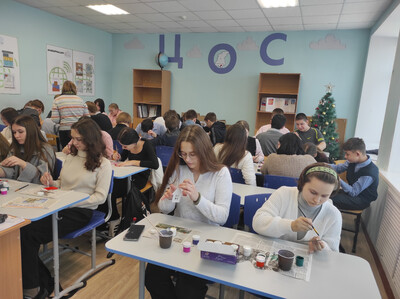 Роспись новогодних игрушек для ребят Ульяновской школы.
