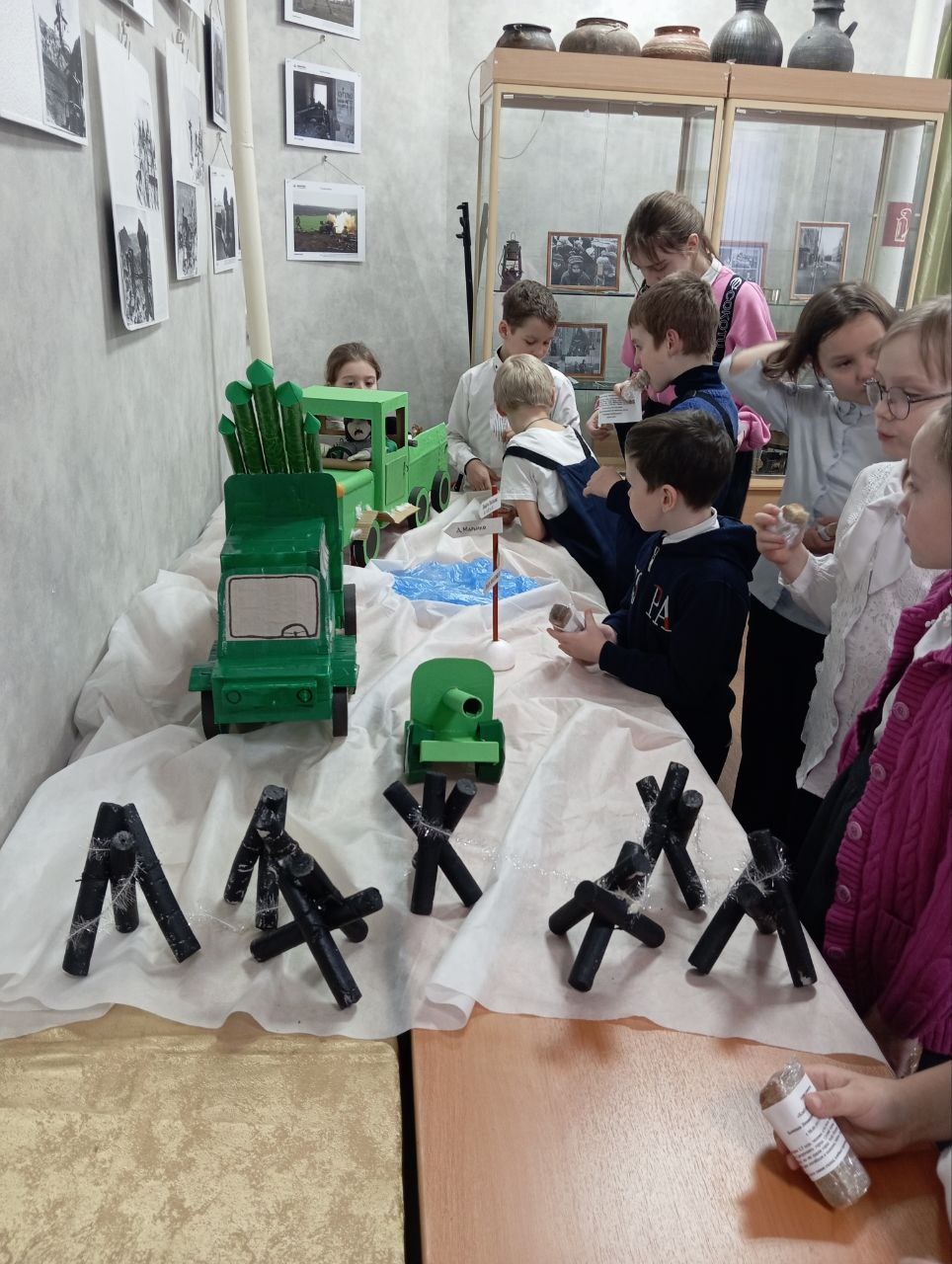Ребята пришли не с пустыми руками, они принесли в музейную экспозицию макет под названием "Дорога жизни", который изготовили в кружках "Аппликация" (рук. Мелехина С.И.) и "Берегиня" (рук. Малышева Н.Э.)