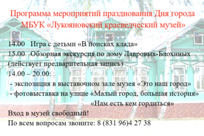 23 августа состоится празднование 246-летия города Лукоянова и 96-летия Лукояновского округа.