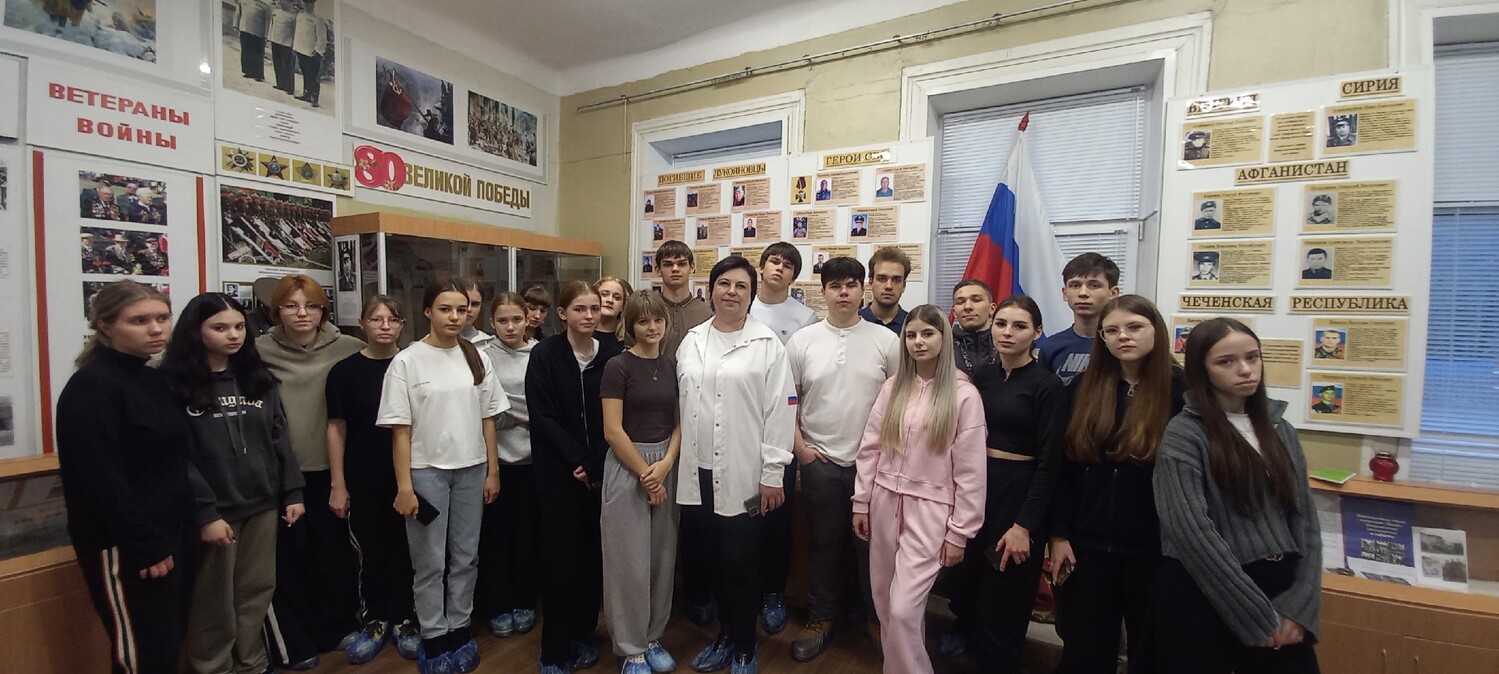 Наш музей посетили студенты первого курса медицинского колледжа (рук. Платонова Г.В.). Ребята познакомились с экспозициями музея, с большим интересом слушали рассказ экскурсовода в зале Боевой Славы, примерили бронежилет и каску из зоны военной операции. В выставочном зале написали письма бойцам и оценили выставку живописи В.Н. Карячкина. Студенты оплатили посещение музея Пушкинской картой. | |